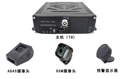 产品简介 【主机T8】基于图像算法和深度学习法,可实现对人(身份证/疲劳驾驶/分神/抽烟/打电话/未系安全带等)、车(急加速/急减速/超速/油耗/定位等)、路(车道偏离/前车碰撞/车距时距检测/驻车滑动/行人碰撞等)交通三要素的实现预警与前面监控,并具备证据视频保存与远程查看等功能,可实现与设备终端/监管平台的对接,可根据不同行业与客户的需求进行软件功能的个性化定制。
